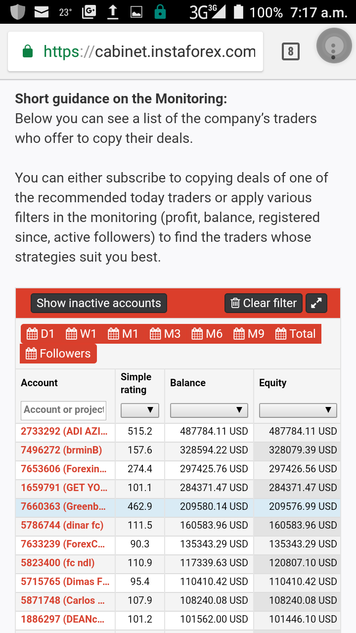 Step Seven: Scroll down on this monitoring page you will see a list of Professional Traders providing the ForexCopy service, select and click on any provider of your choice