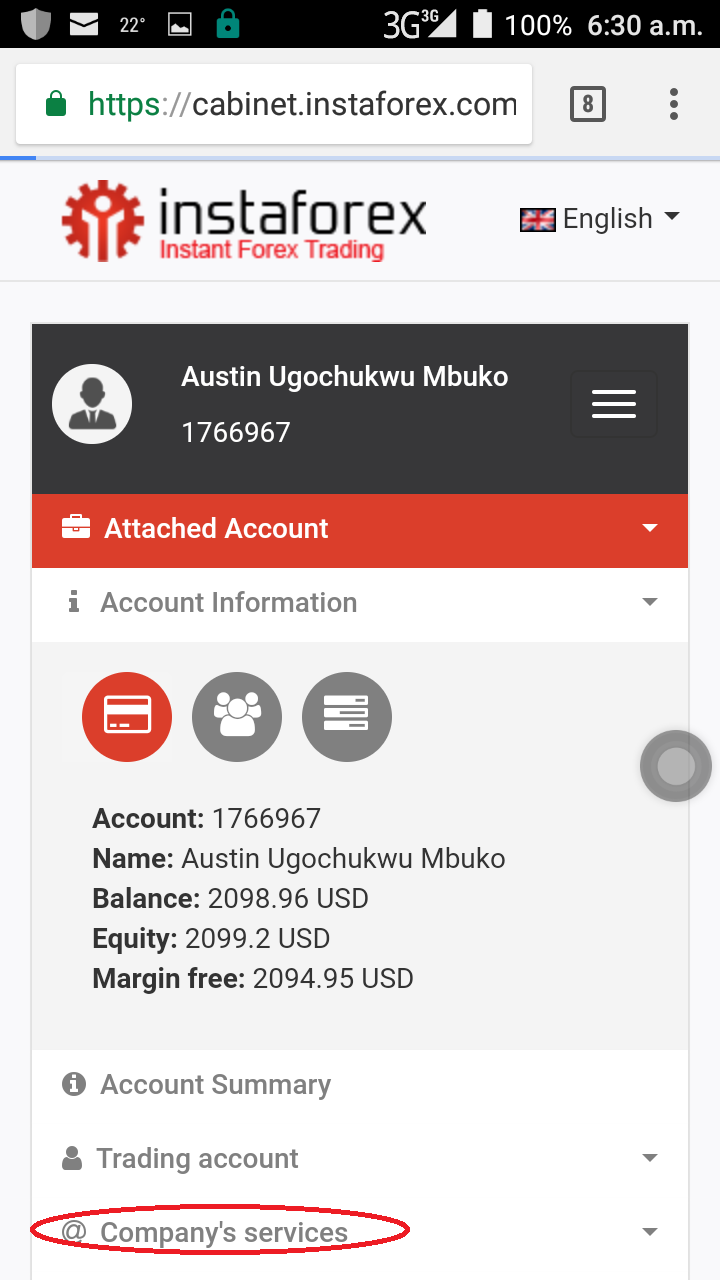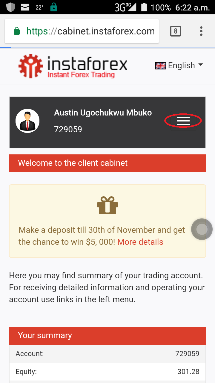 Step One: Login to your Client Cabinet using your account number and the trading password you received from InstaForex